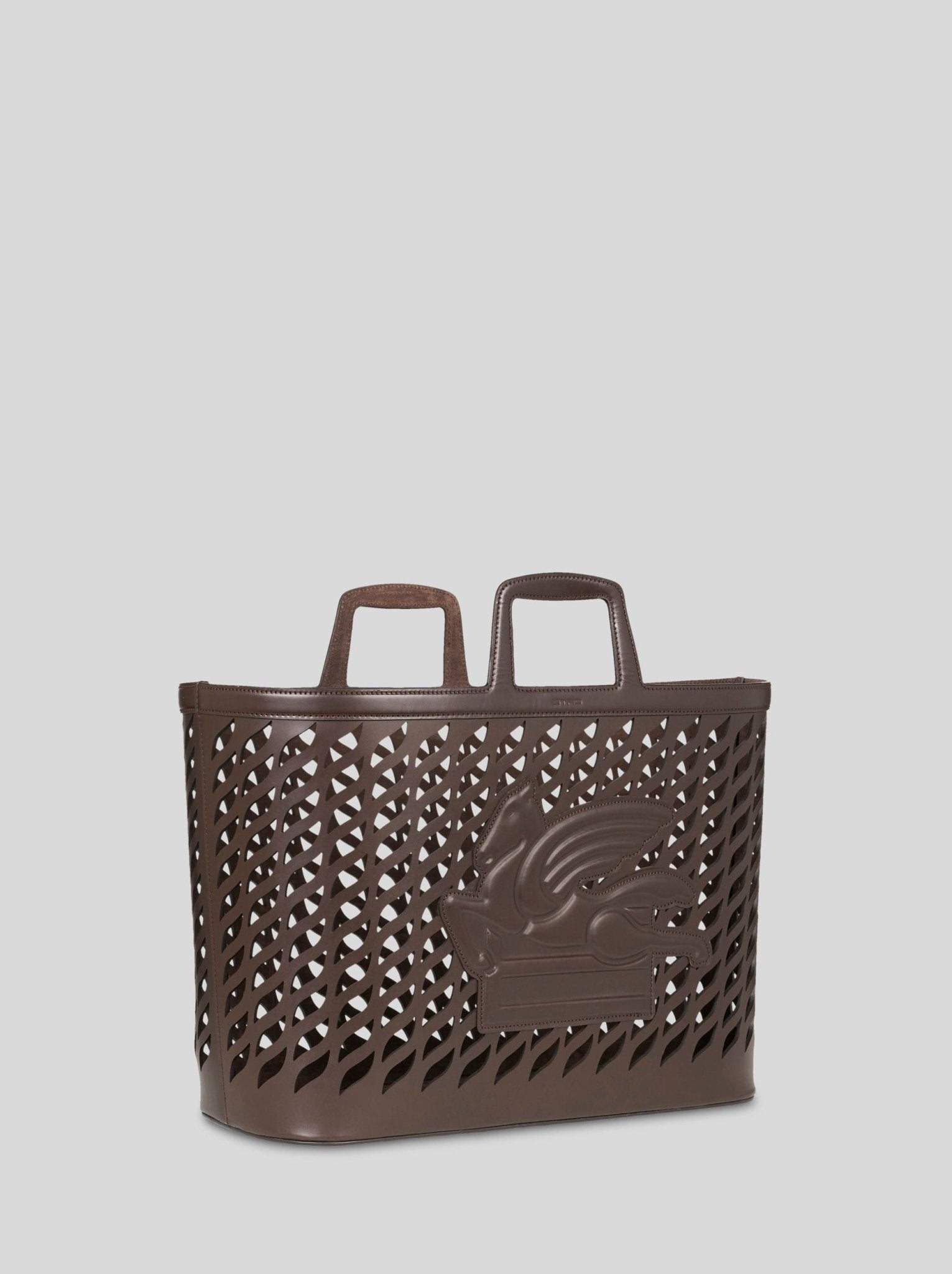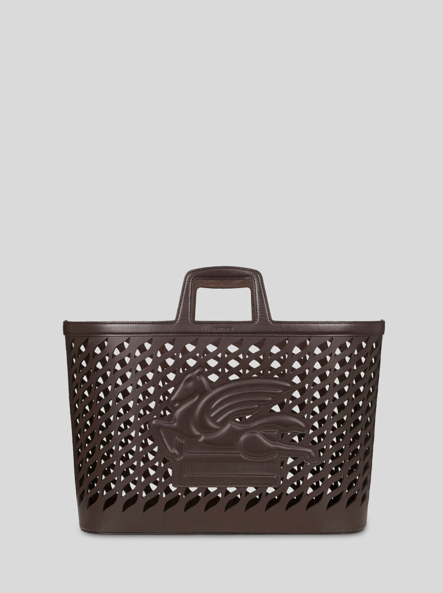 Porta Plaid caraterizzato dalla lavorazione laserata del cuoio e del Pegaso applicato. Internamente arricchito dal logo Etro impresso.