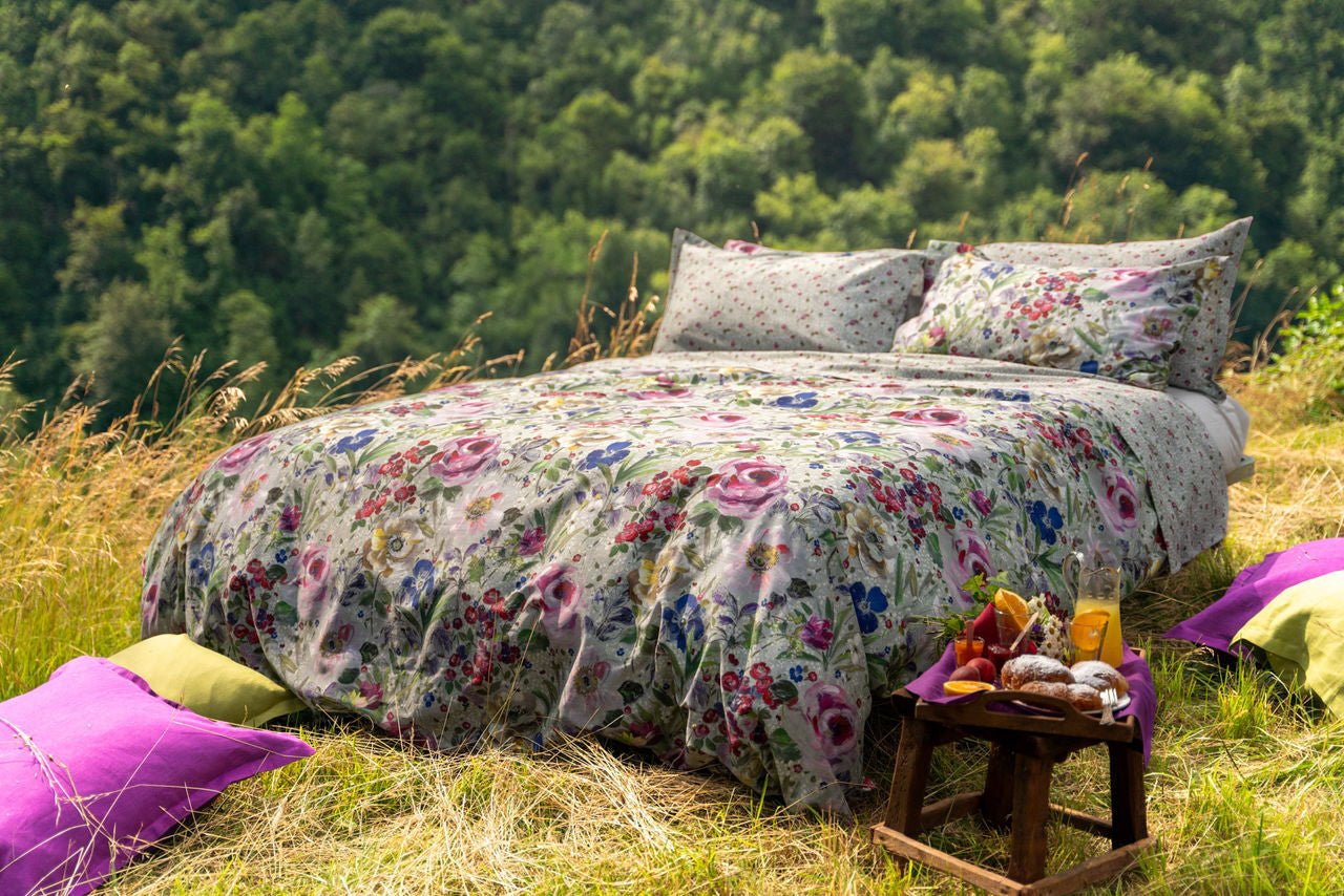 Una natura morta dipinta a mano, questo è il copripiumino Grace, stampato su raso 300 fili in purissimo cotone. L'eleganza di un disegno ad olio su tela, magistralmente trasferito sul tessuto arreda la tua camera con stile e freschezza.