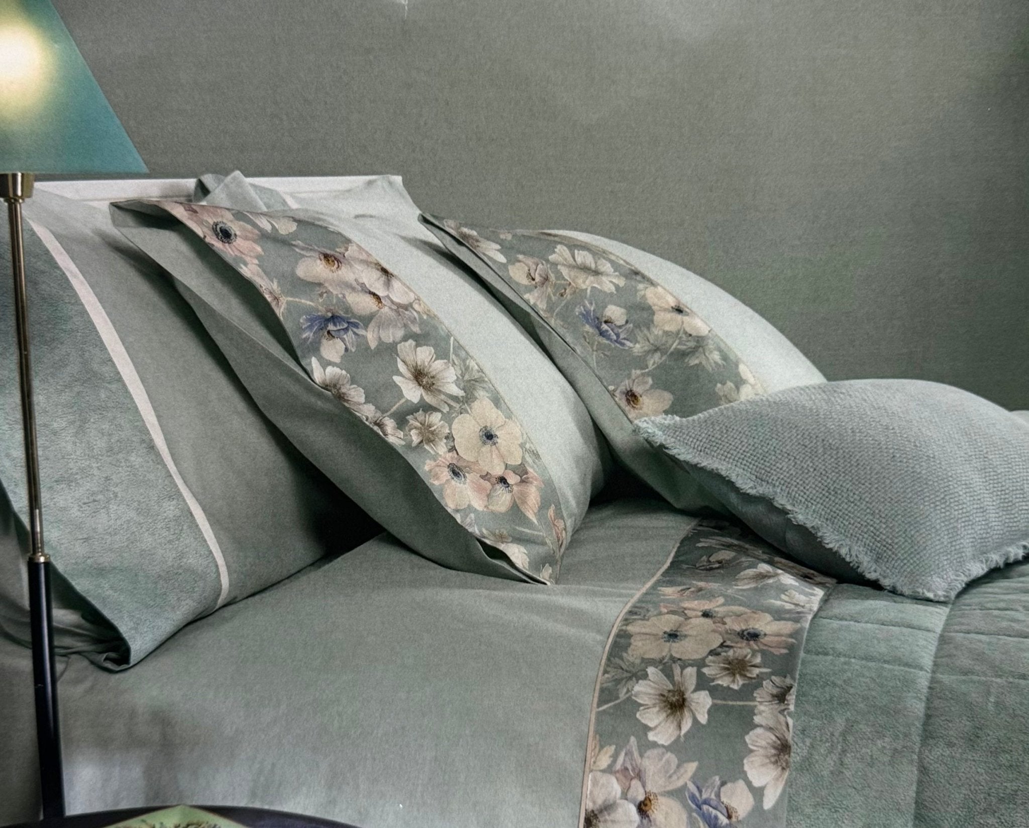 Il completo è composto dal Lenzuolo sopra, le 2 Federe e il Lenzuolo da Sotto con Angoli.
