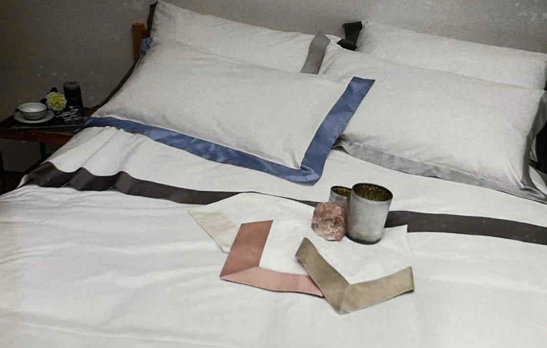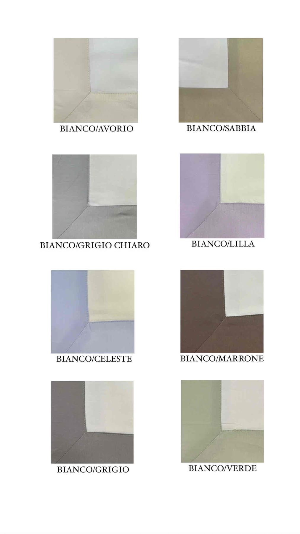 lenzuolo sopra:260x290 bordo in raso di cotone sateen applicato sulla testata