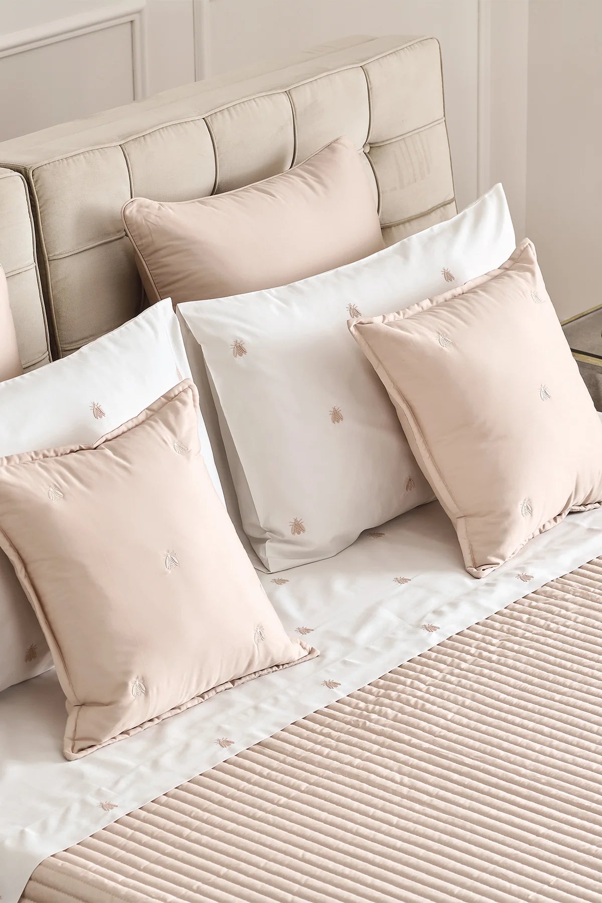 Ai set letto con ricamo Api abbiamo coordinato le versioni con doppia bacchettina, disponibili sia per