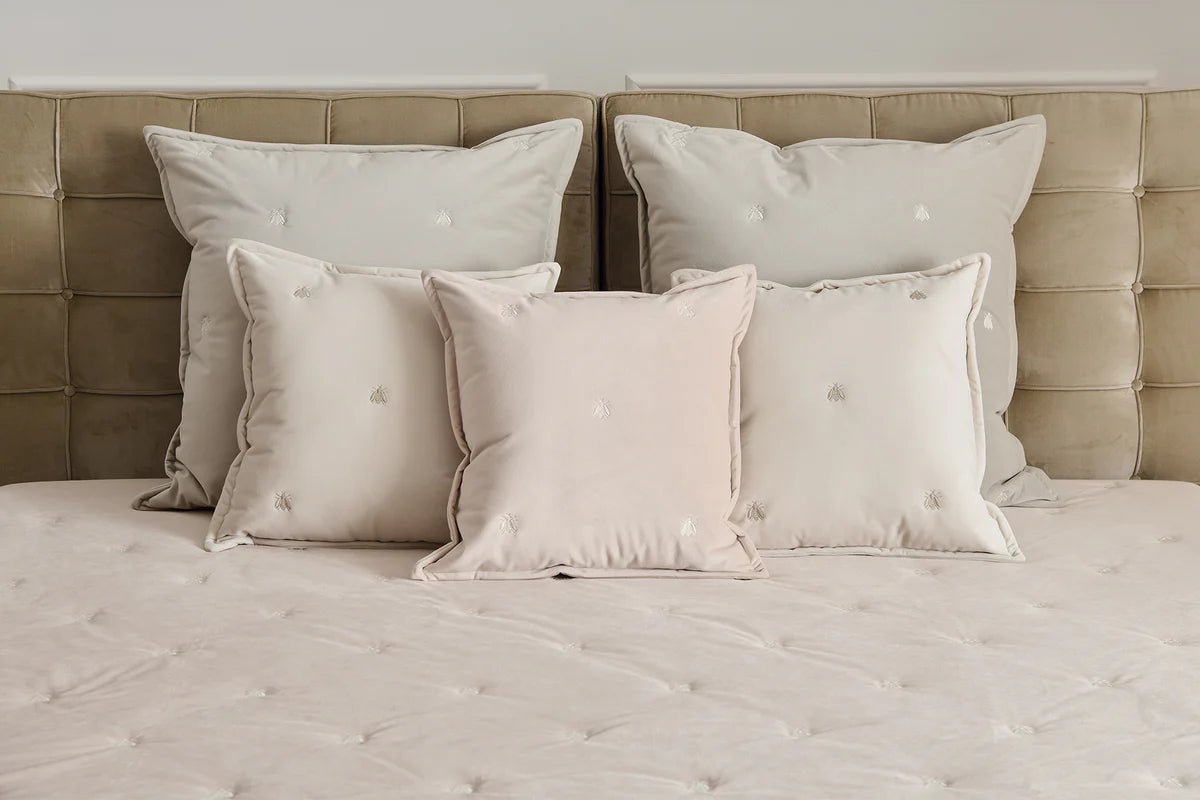 La proposta include trapunte, quilt, coprifedere e cuscini, tutti realizzati con un raffinato velluto.