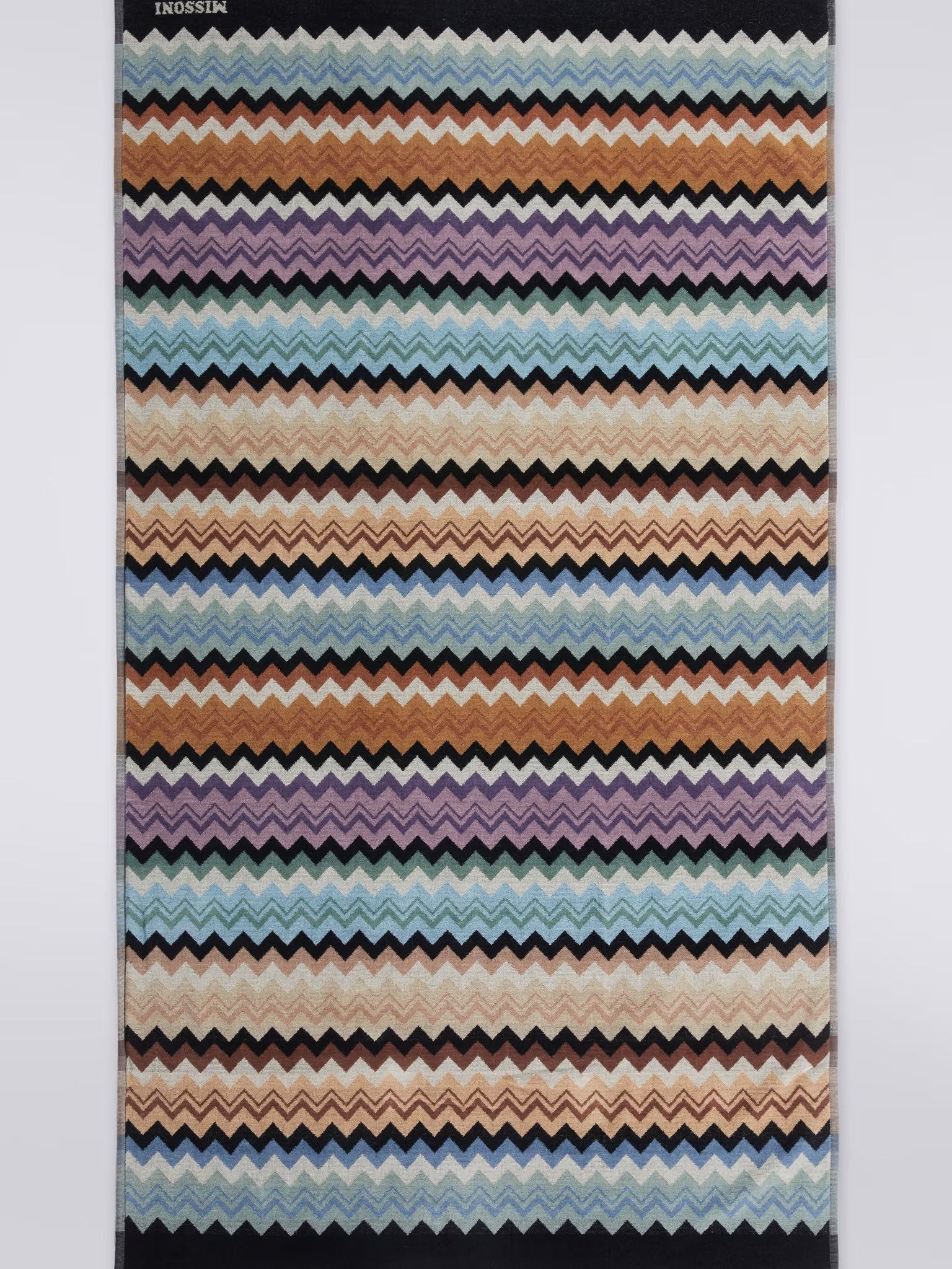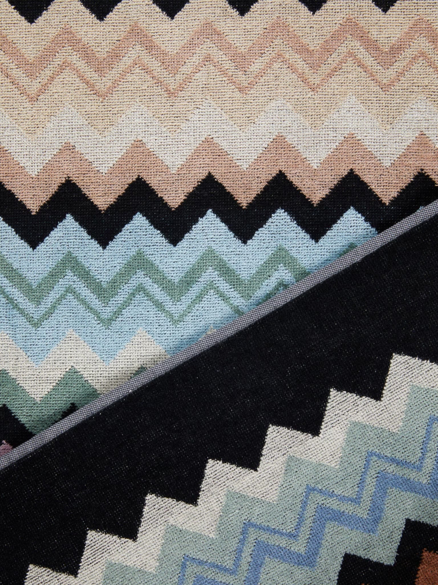 La morbida spugna di cotone velour caratterizza Adam, il telo mare 100x180 cm. Questo asciugamano presenta chiaramente i tratti distintivi del DNA MissoniHome, arricchito dal caratteristico motivo chevron che conferisce il suo tocco distintivo.
