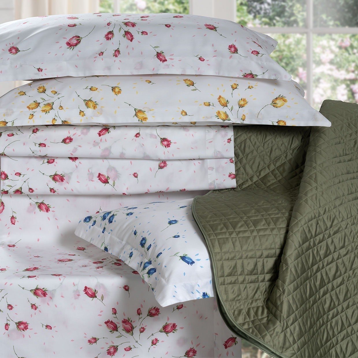 Dona un tocco di freschezza e raffinatezza alla tua camera da letto con questo splendido completo lenzuola/copritetto matrimoniale caratterizzato da una delicata stampa floreale, ideale per chi ama uno stile romantico e armonioso.