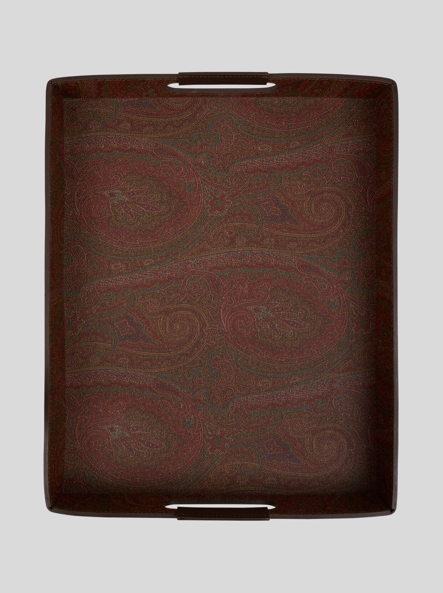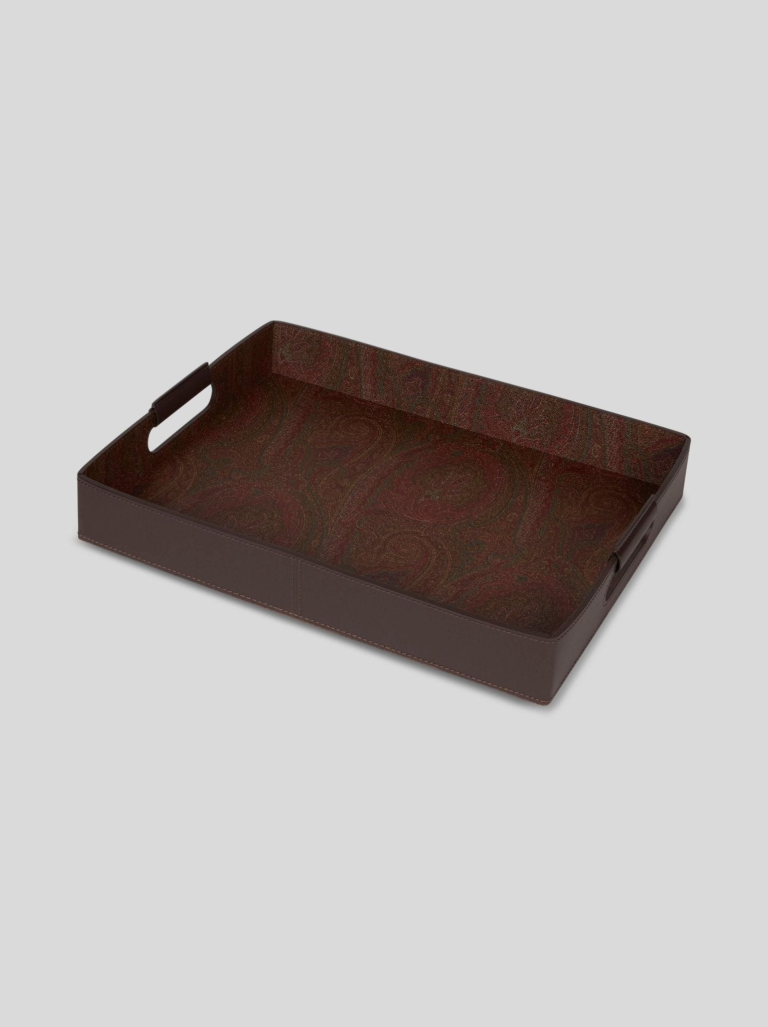 Vassoio rettangolare con interno realizzato nell'iconico tessuto Paisley jacquard e esterno in pelle.