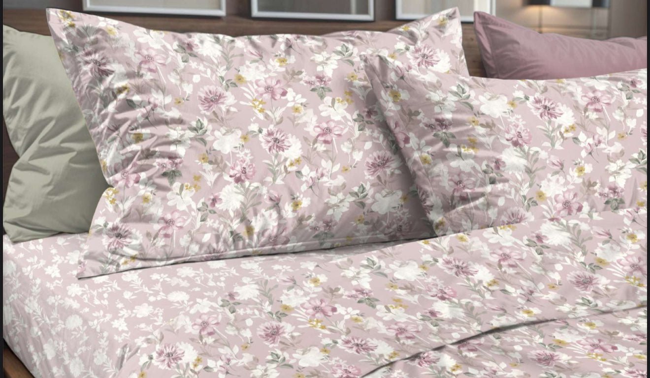 Completo lenzuola matrimoniale stampato, fabbricato in tela di cotone 100% con tecniche di incisione di stampa raffinate ed artigianali.