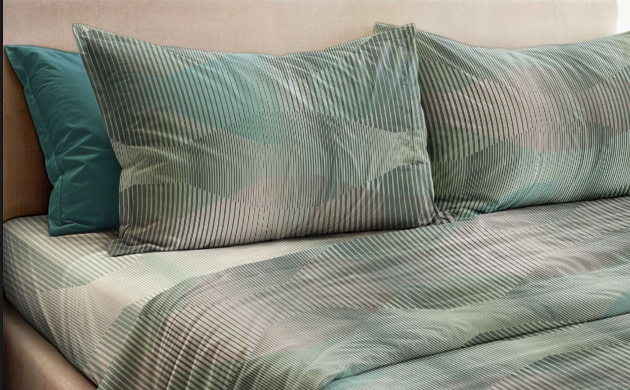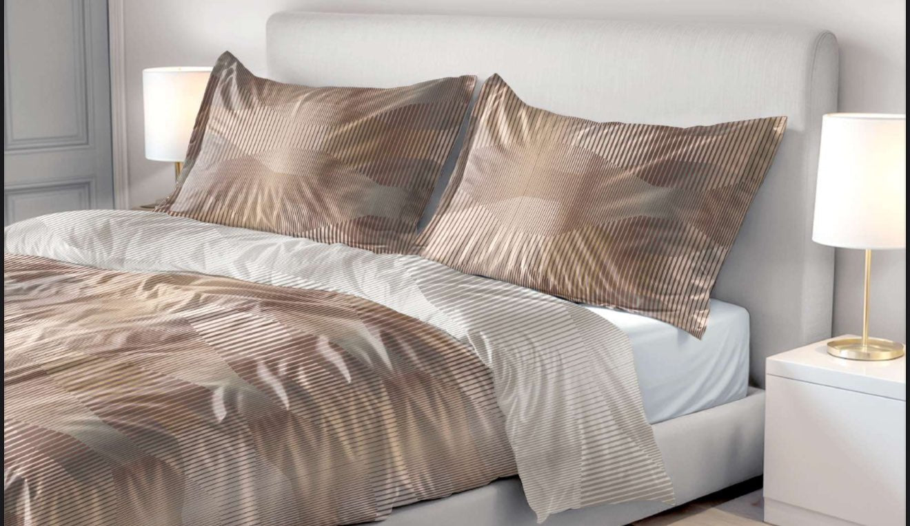 Completo lenzuola stampato, fabbricato in percalle cotone 100% con decori e colori particolarmente alla moda, secondo le più avanzate tendenze internazionali.