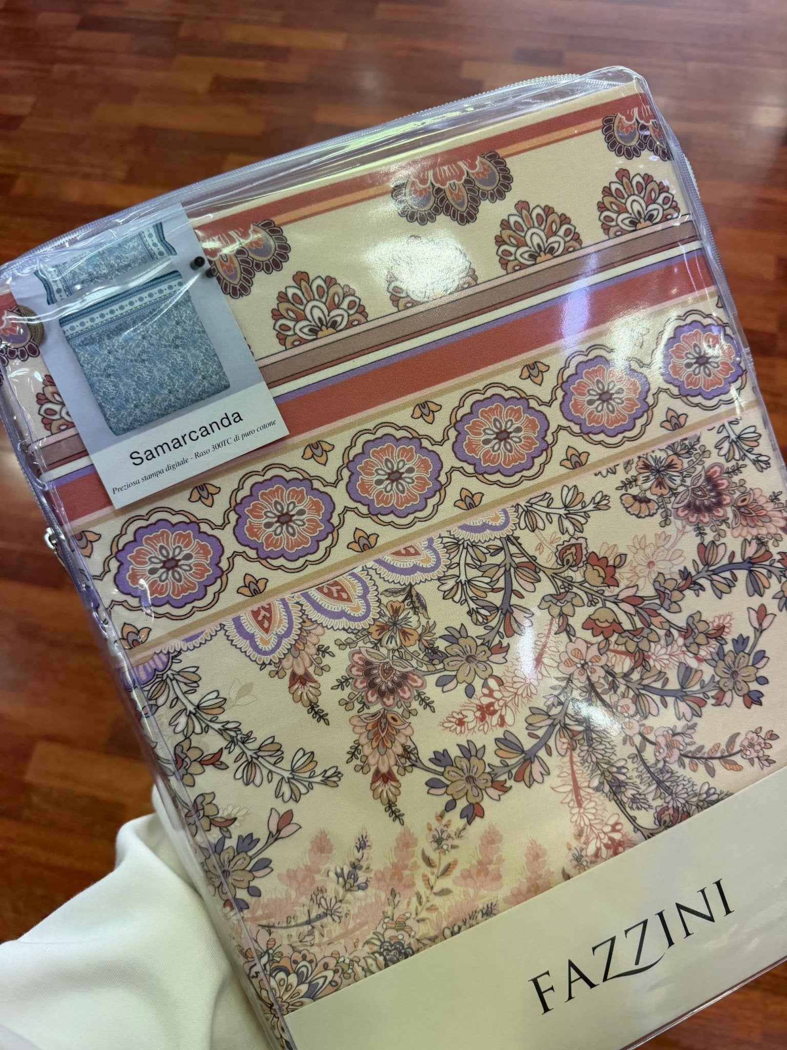 Samarcanda, crocevia di culture lungo la Via della Seta, ispira medaglioni e arabeschi sinuosi, simbolo di viaggi lontani e di un’estetica senza tempo che vive nella collezione di biancheria.
