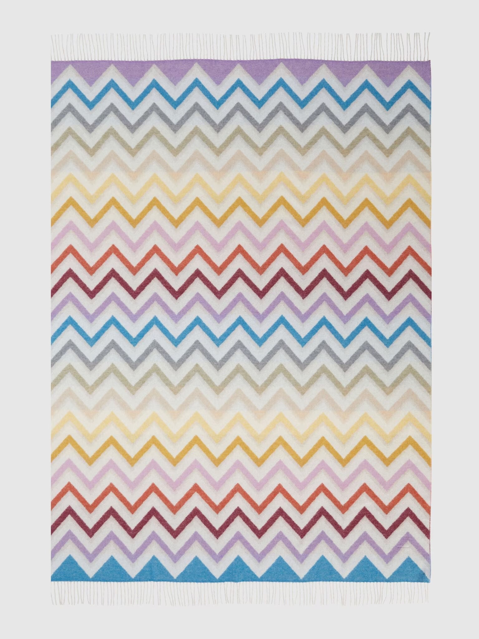 Il plaid Watamu di Missoni, nelle dimensioni di 130x190 cm, è un perfetto equilibrio tra comfort e design. Realizzato in misto lana, esibisce l’iconica fantasia a zig zag della maison, reinterpretata con un gioco di colori vibranti. Le frange decorative completano il look con un tocco di raffinata dinamicità, rendendolo un complemento d’arredo sofisticato e avvolgente.