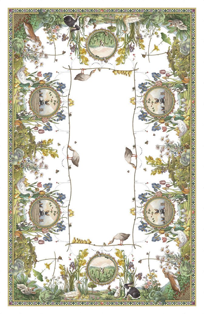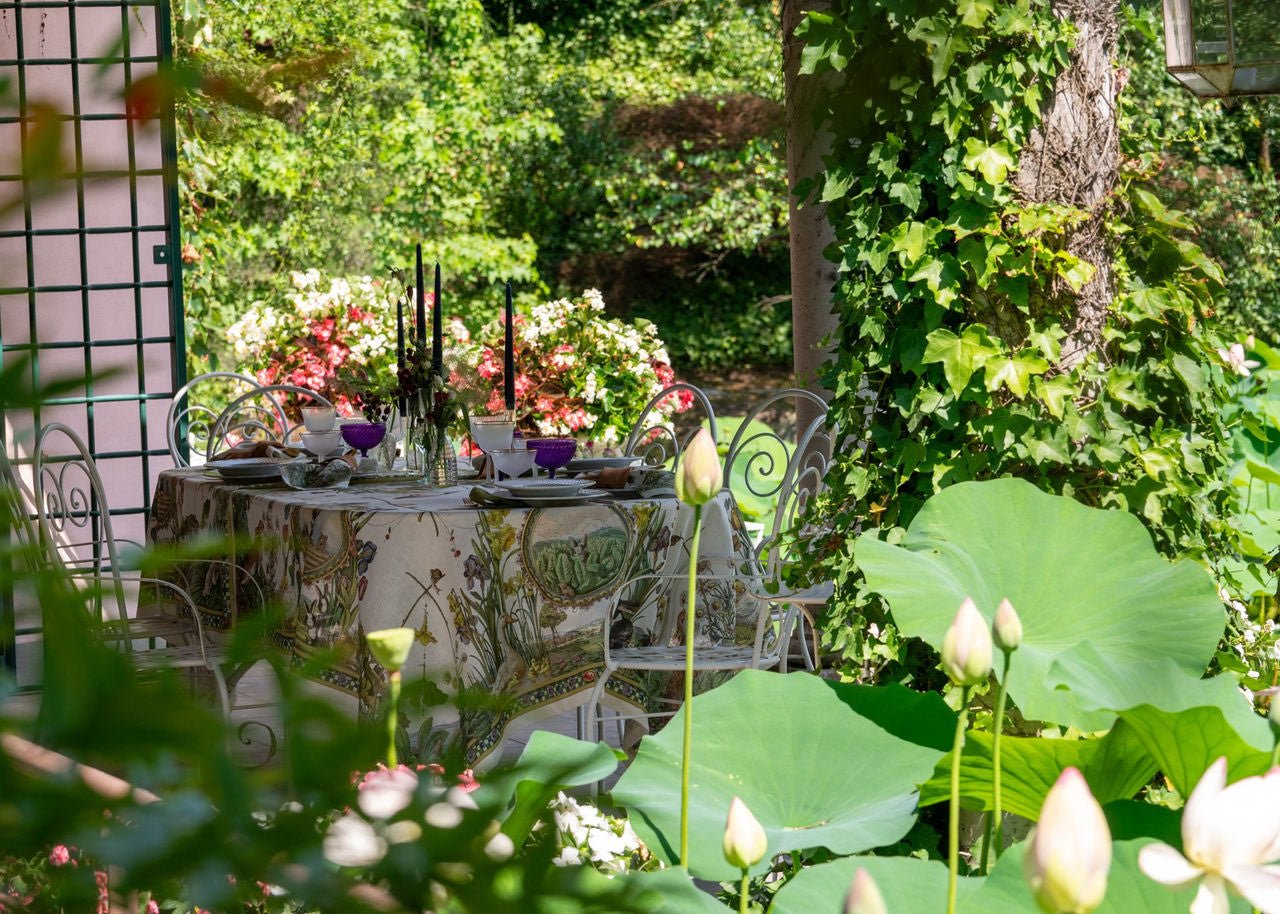 La tovaglia BUNNY GARDEN RUNNER racconta una storia delicata ispirata ai giardini incantati e alla natura più autentica. Tra fiori spontanei, foglie rigogliose e piccoli conigli nascosti nel verde, il disegno crea un'atmosfera fiabesca e raffinata, capace di sorprendere con dettagli ricchi e armoniosi.
