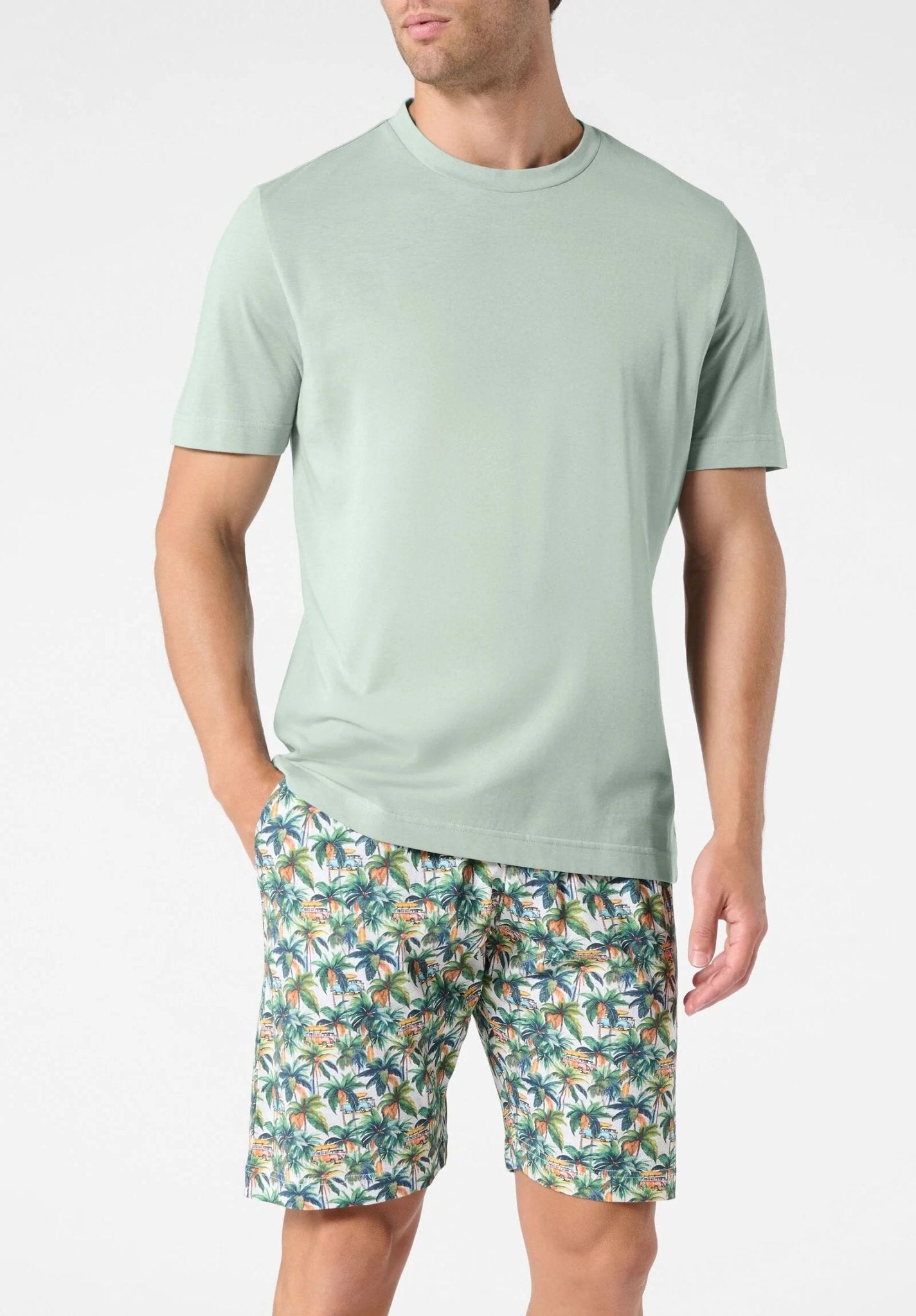 Il pigiama corto girocollo Perofil è pensato per offrire comfort e stile nei momenti di riposo quotidiano. Realizzato in 100% jersey di cotone, garantisce morbidezza, traspirabilità e una piacevole sensazione sulla pelle, ideale per la stagione estiva. La maglia girocollo presenta un design essenziale e moderno, mentre i bermuda sono impreziositi da stampe esclusive Perofil, che donano carattere e un look contemporaneo. Dotati di tasche laterali e coulisse regolabile in vita, assicurano praticità e una vestibilità confortevole durante la notte e nei momenti di relax in casa. La vestibilità moderna rende questo pigiama versatile e funzionale. Il capo viene inoltre consegnato in un pratico sacchetto porta pigiama coordinato, realizzato nella stessa fantasia dei bermuda, perfetto anche come idea regalo.