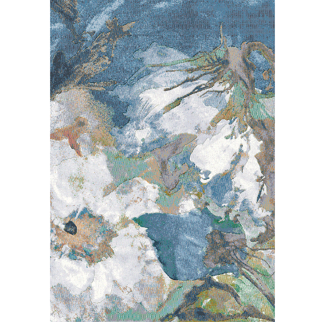 Il tappeto LAGUNA 63807/2626 si presenta con un design floreale astratto, caratterizzato da morbide pennellate di blu, verde e tonalità neutre, che creano un effetto artistico e delicato. Prodotto meccanicamente con estrema precisione, questo tappeto è perfetto per chi cerca un elemento decorativo sofisticato e di alta qualità, ideale per ambienti dallo stile contemporaneo.