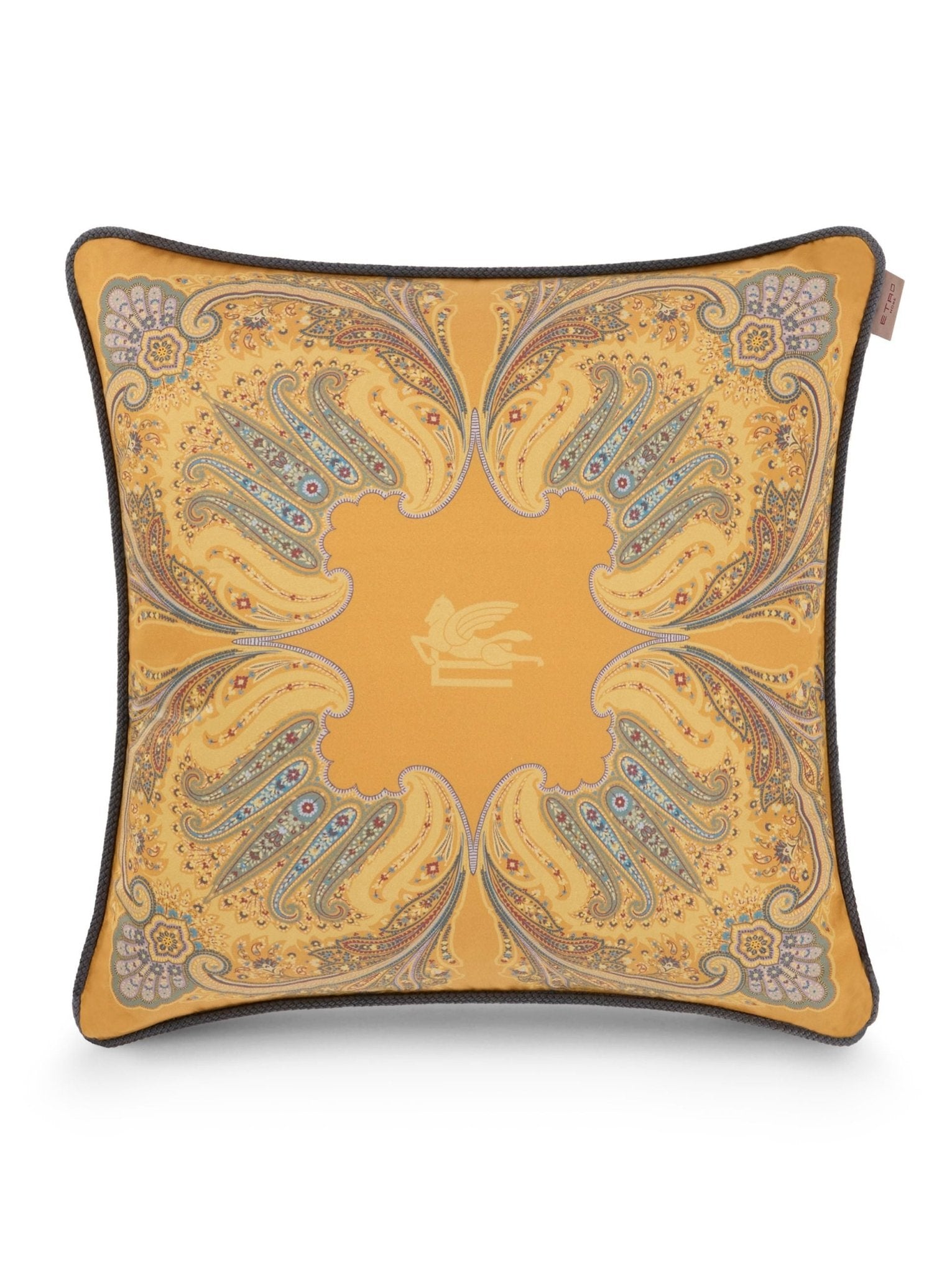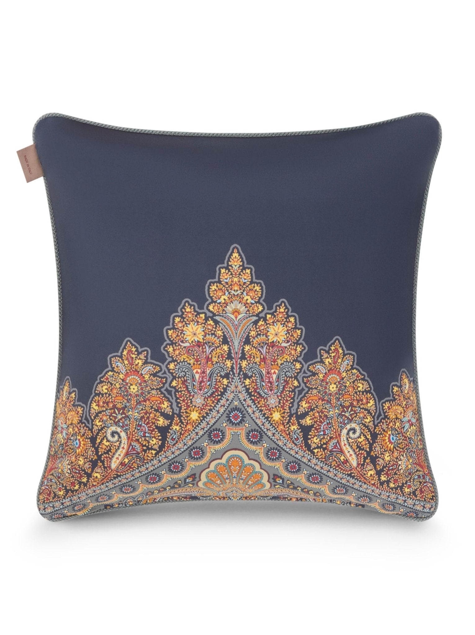 Completano il coordinato due cuscini arredo da 45x45 cm, rifiniti con cordoncino perimetrale che aggiunge un tocco sartoriale al design. Entrambi i lati sono in raso di cotone stampato, in perfetta continuità con lo stile della trapunta, per un effetto armonioso e sofisticato.